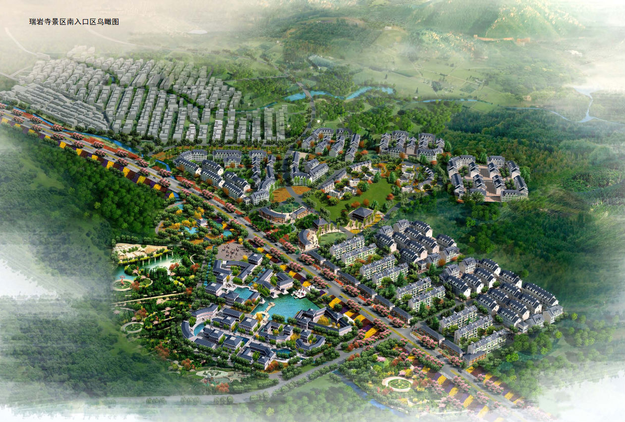 河头片以水岸餐饮购物街和旅游度假中心为核心,各居住组团采用分散式布局依山而建,山体景观和建筑景观相互渗透。