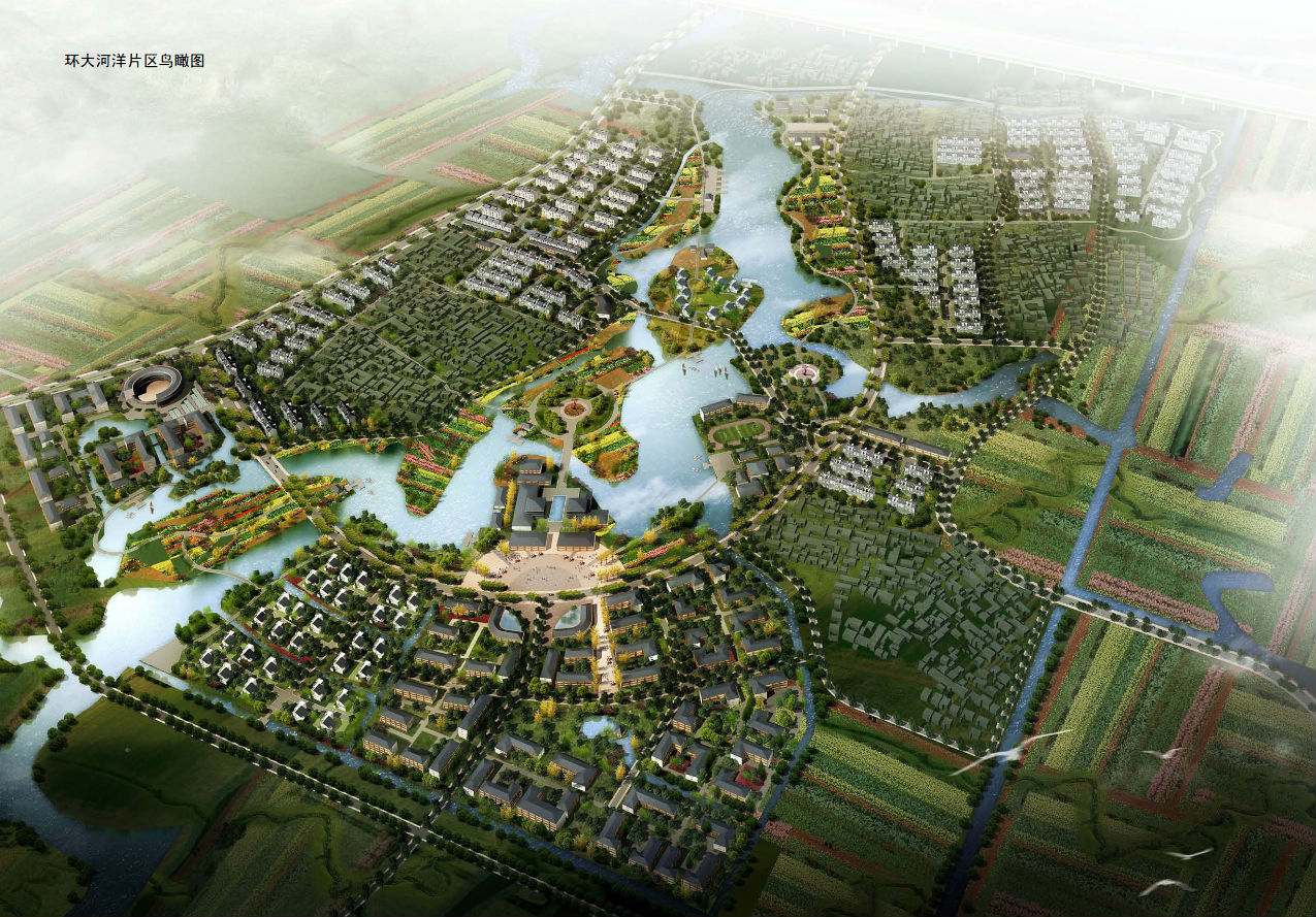 规划依托紫石片区良好环境背景,加强与自然生态用地、绿地、水系的沟通与联系,致力于生态花乡的构造。精心营造环大河洋水岸花田公园,严格控制新增区域的临道路建筑界面长度,以保护自然山水的视觉通达性。与农田、公园、水域等开敞空间共同构成绿化生态乡村的自然基准面。